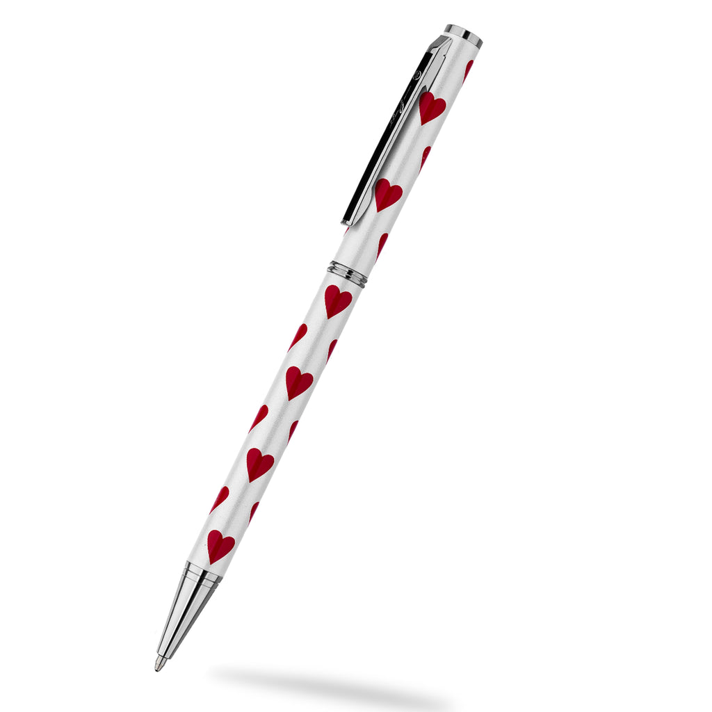 Rose Pink Love Hearts Slim Ballpoint Pen